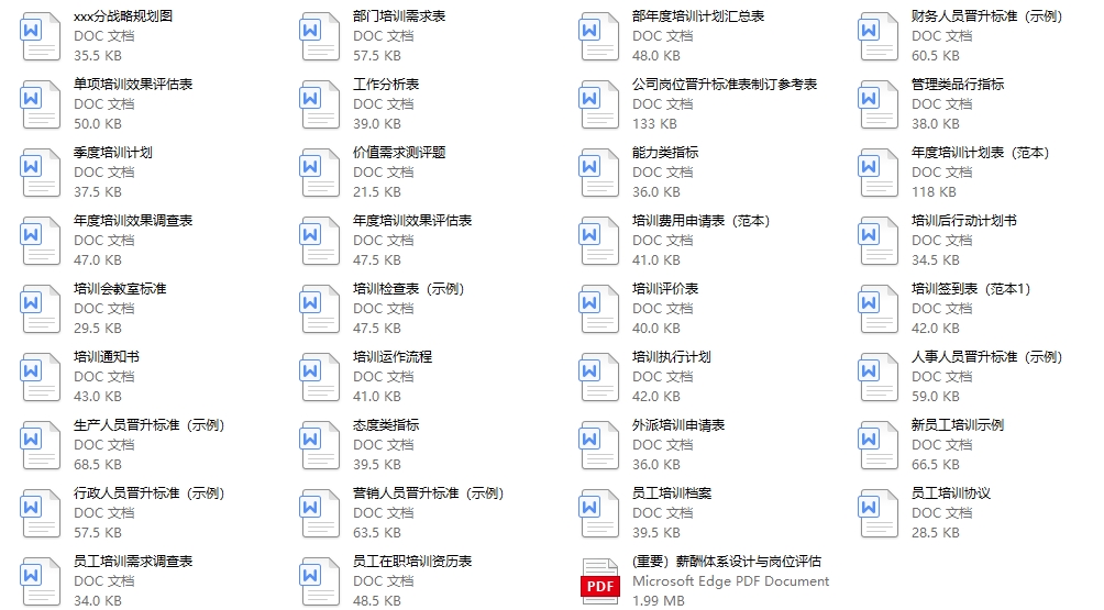企业常用表格共35份文档